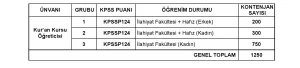> Not: Diyanet, Kur’an Kursu Öğreticisi alımlarında genellikle kadın adaylara daha fazla kontenjan ayırmaktadır (4-6 yaş kursları ve kız Kur’an kursları ihtiyacı nedeniyle).