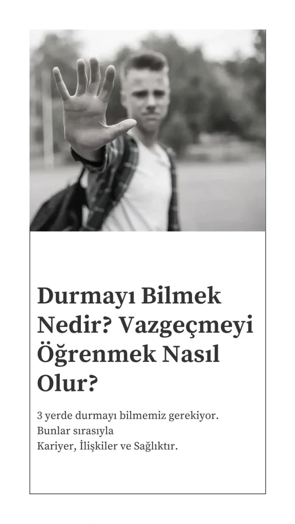 3 yerde durmayı bilmemiz gerekiyor. Bunlar sırasıyla kariyer, ilişkiler ve sağlıktır.