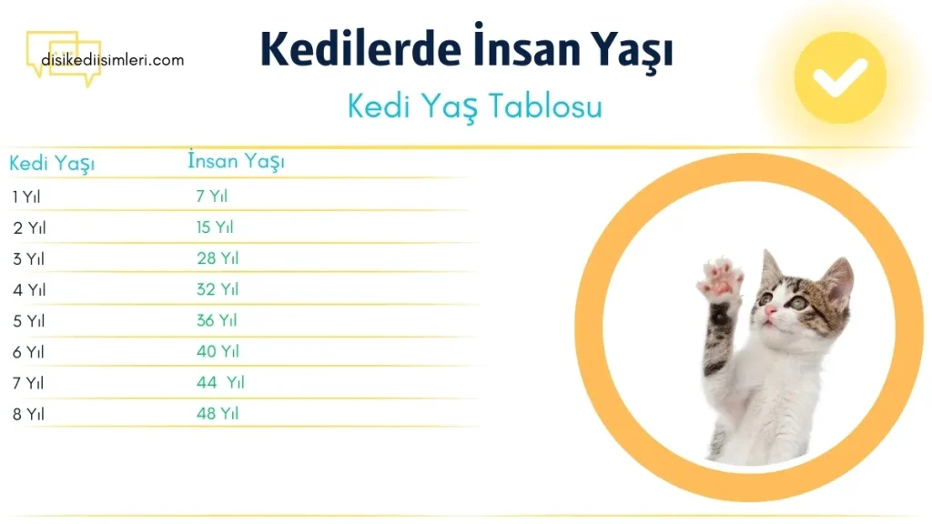 Kedilerin yaşlanma süreçleri insanlardan farklıdır. Bir yıl içerisinde kedi yaşının insan yaşına nasıl denk geldiğini anlamak için genellikle 7 katı kuralı kullanılır. Bu kurala göre, bir yaşındaki bir kedi, insan yaşına göre yaklaşık 7 yaşındaki bir çocuğa denk gelir. Ancak, bu kural her zaman tam olarak doğru değildir ve kedinin türüne, cinsine ve yaşam koşullarına göre değişmektedir.