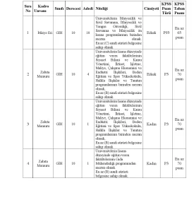 | Kadro | Alım Sayısı | Eğitim Durumu | KPSS Puanı (Min.) |