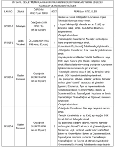 Alım Yapılacak Pozisyonlar ve Nitelikleri